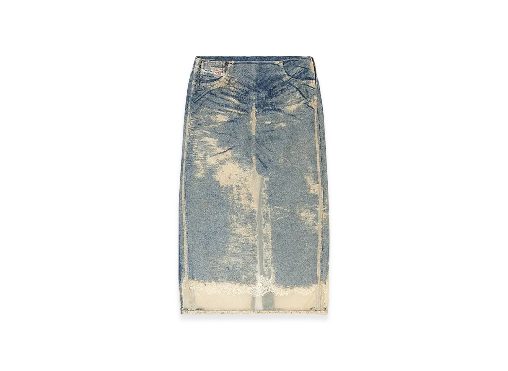 Diesel De-Pra-Fsf Midi Skirt In Floating Devore Denim "Medium Blue"