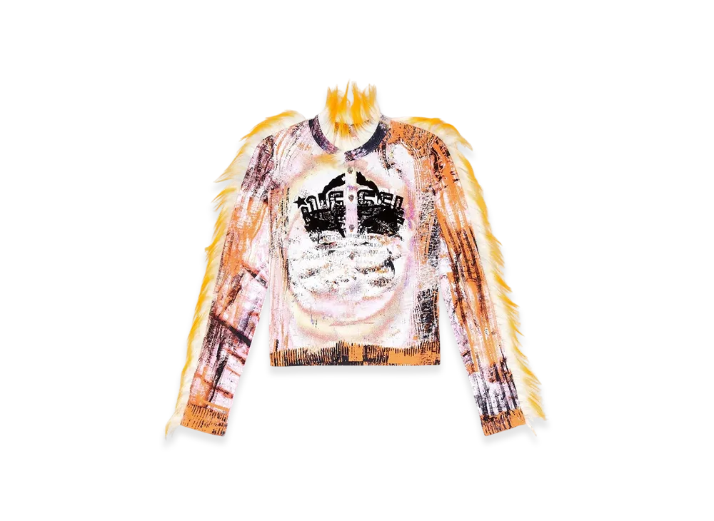 Diesel T-Astris Cropped Henley Top With Fuzzy Trims "White Orange"