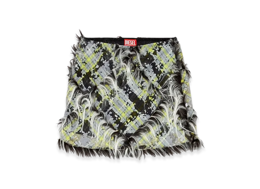 Diesel O-Begy Tulle Miniskirt With Fuzzy Trims "Black Green"