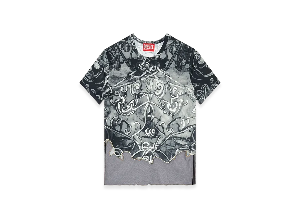 Diesel T-Inlay Nylon T-Shirt With Heraldic Print "Black Gray"