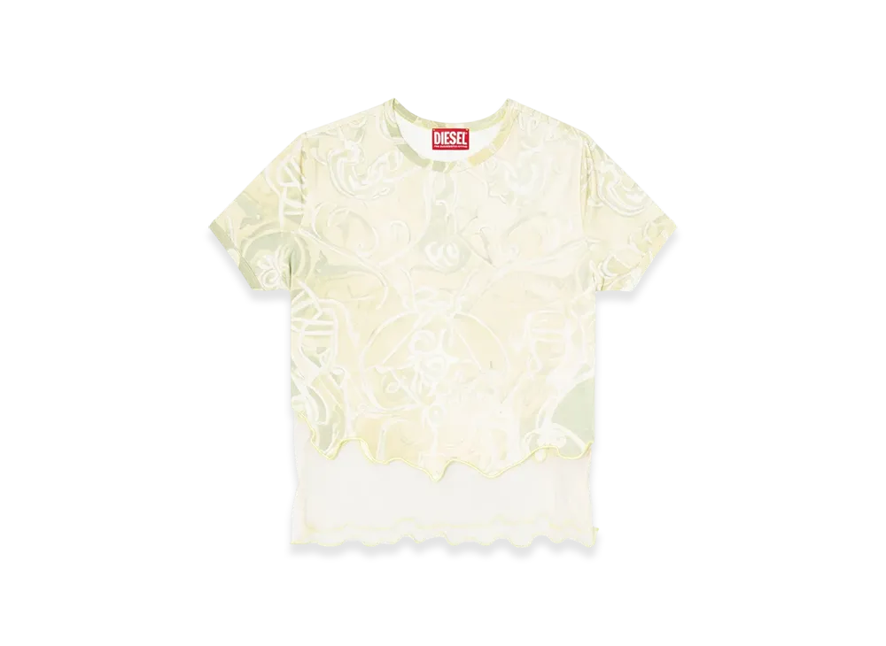 Diesel T-Inlay Nylon T-Shirt With Heraldic Print "Green"