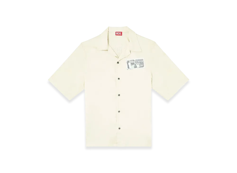 Diesel S-Brack-B-Epbr Tencel Shirt With Rhinestone Graphic "Beige"