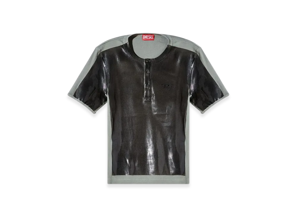 Diesel T-Ribber-Dd Henley T-Shirt With Coated Front "Dark Gray"