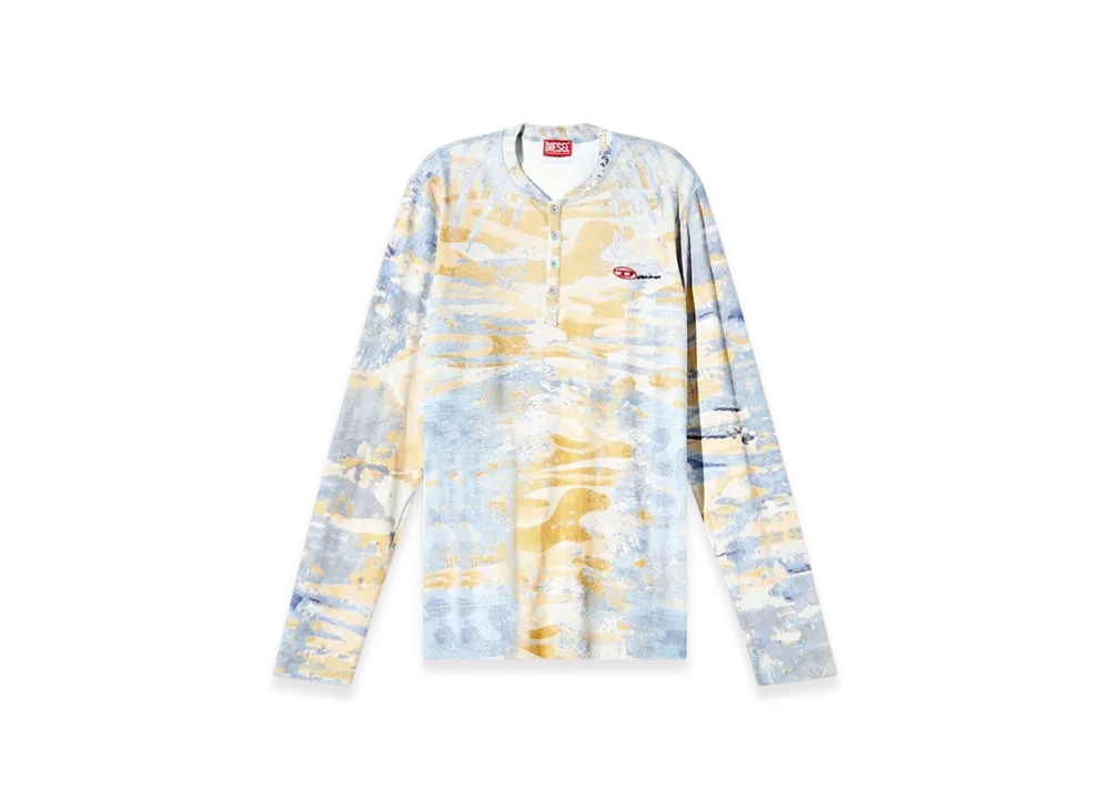 Diesel T-Juser-Dd Henley Top With Camo Print "Blue Yellow"