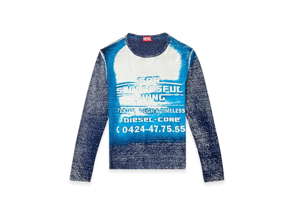 Diesel K-Mastice Cotton Jumper With Trompe LOeil Effect "Azure"