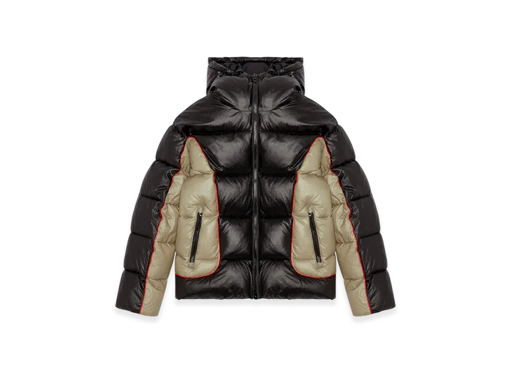 Diesel W-Ostend Hooded Puffer Jacket In Shiny Ripstop "Black Beige"