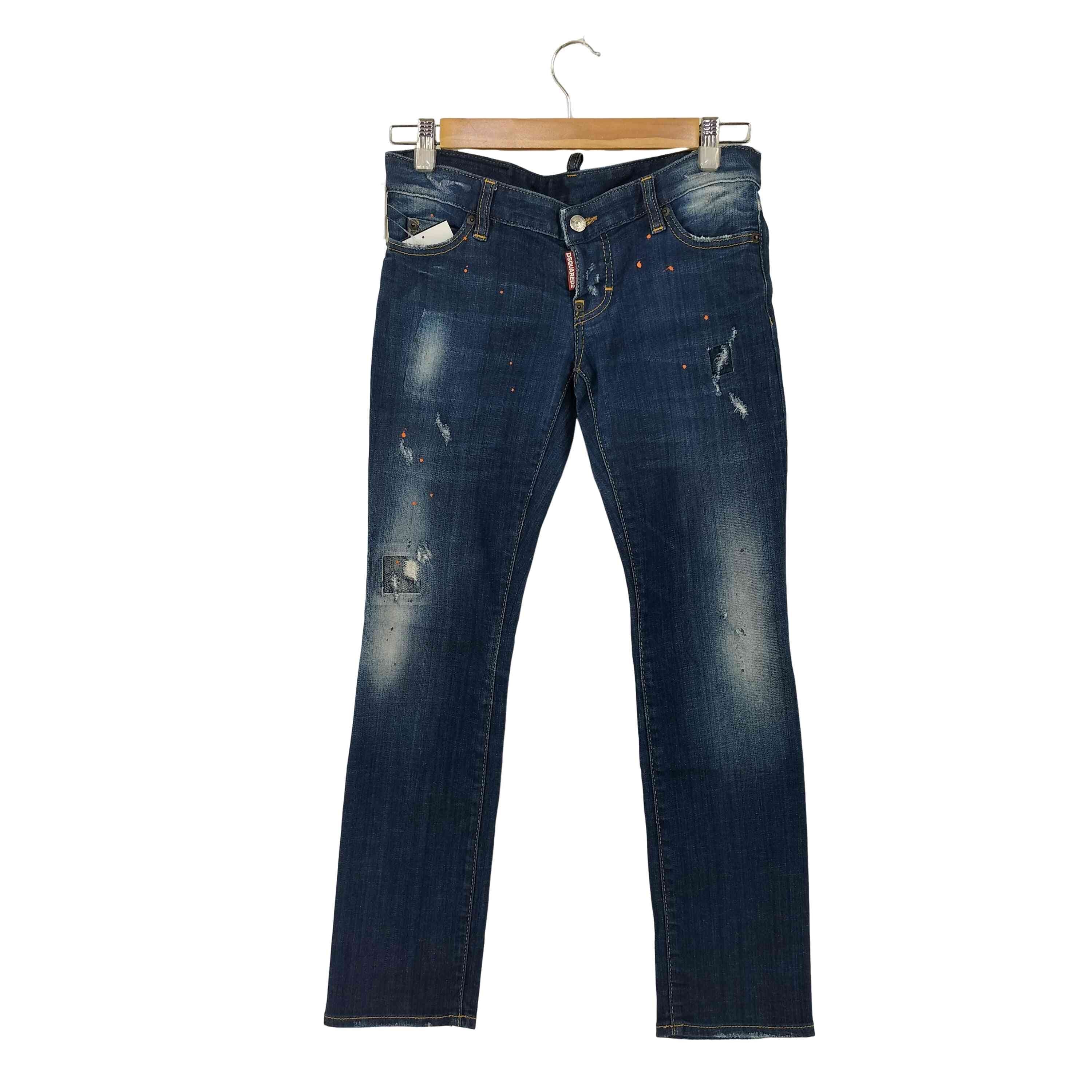 DSQUARED2 ディースクエアード デニムパンツ S72LB0436 Super Twinky Jean スーパーツインキー ドリップペイント ダメージ リペア加工 デニム ストレッチ スキニー スリム パンツ インディゴブルー系 38【中古】