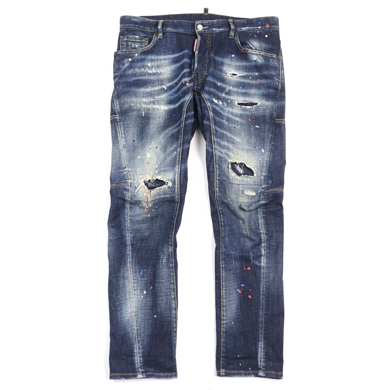 ■未使用品■DSQUARED2 ディースクエアード CITY BIKER JEAN シティ バイカー ジーン デニムパンツ サイズ46 ダメージ加工 ペイント クラッシュデニム テーパード レザーロゴ イタリア製 20250714/RA5420