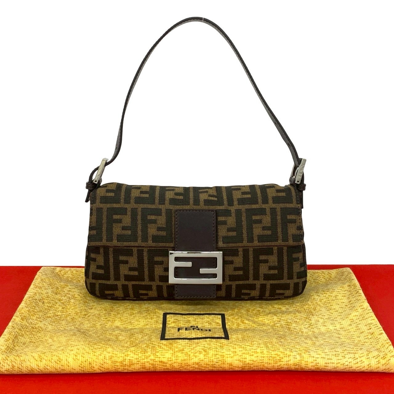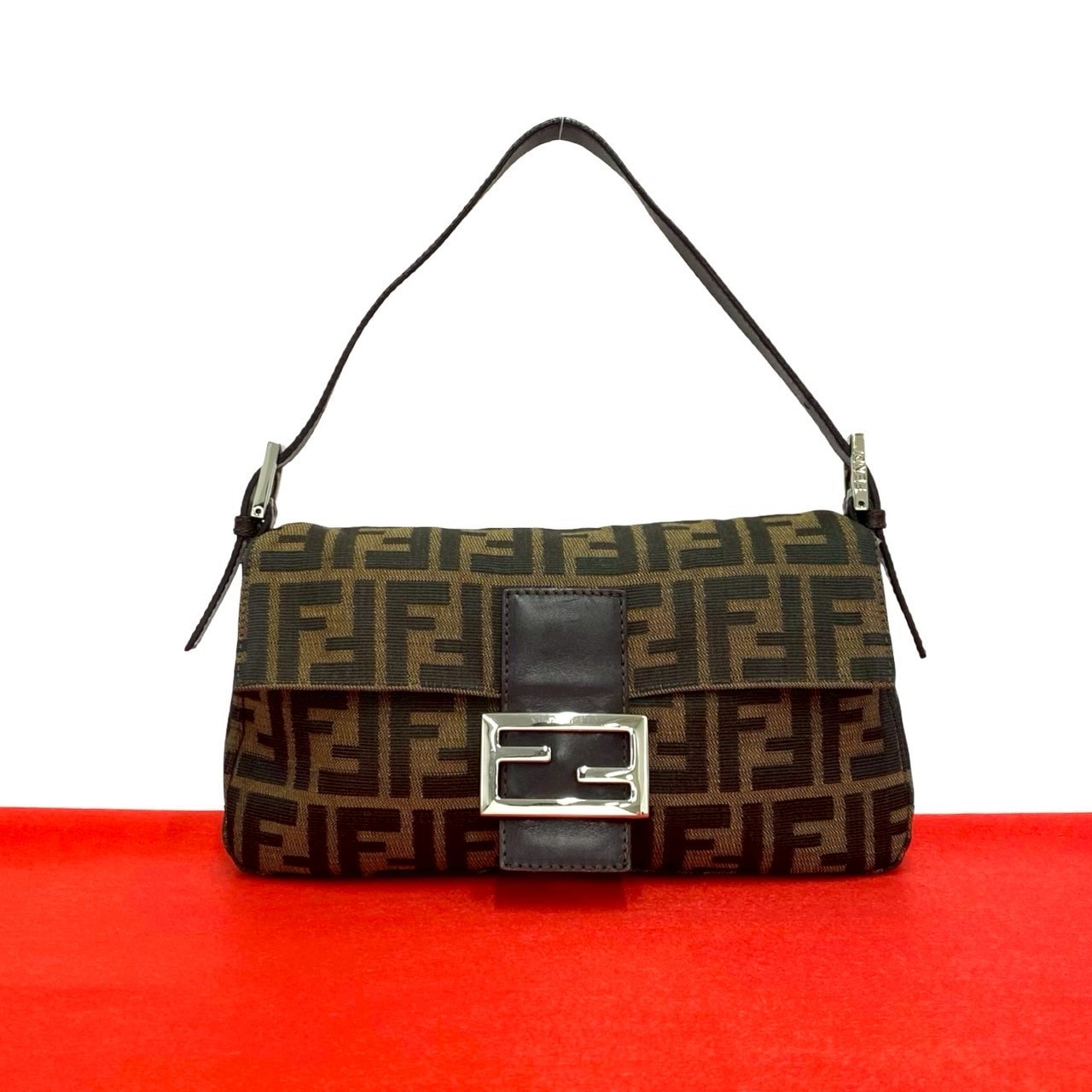 FENDI フェンディ ズッカ FF ロゴ 柄 キャンバス レザー ショルダーバッグ ブラウン