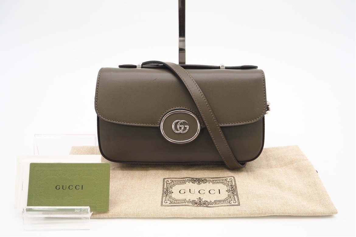 極美品 GUCCI グッチ ダブルG プチGG レザー 2WAYショルダー 739722 ショルダーバッグ グリーン レザー レディース
