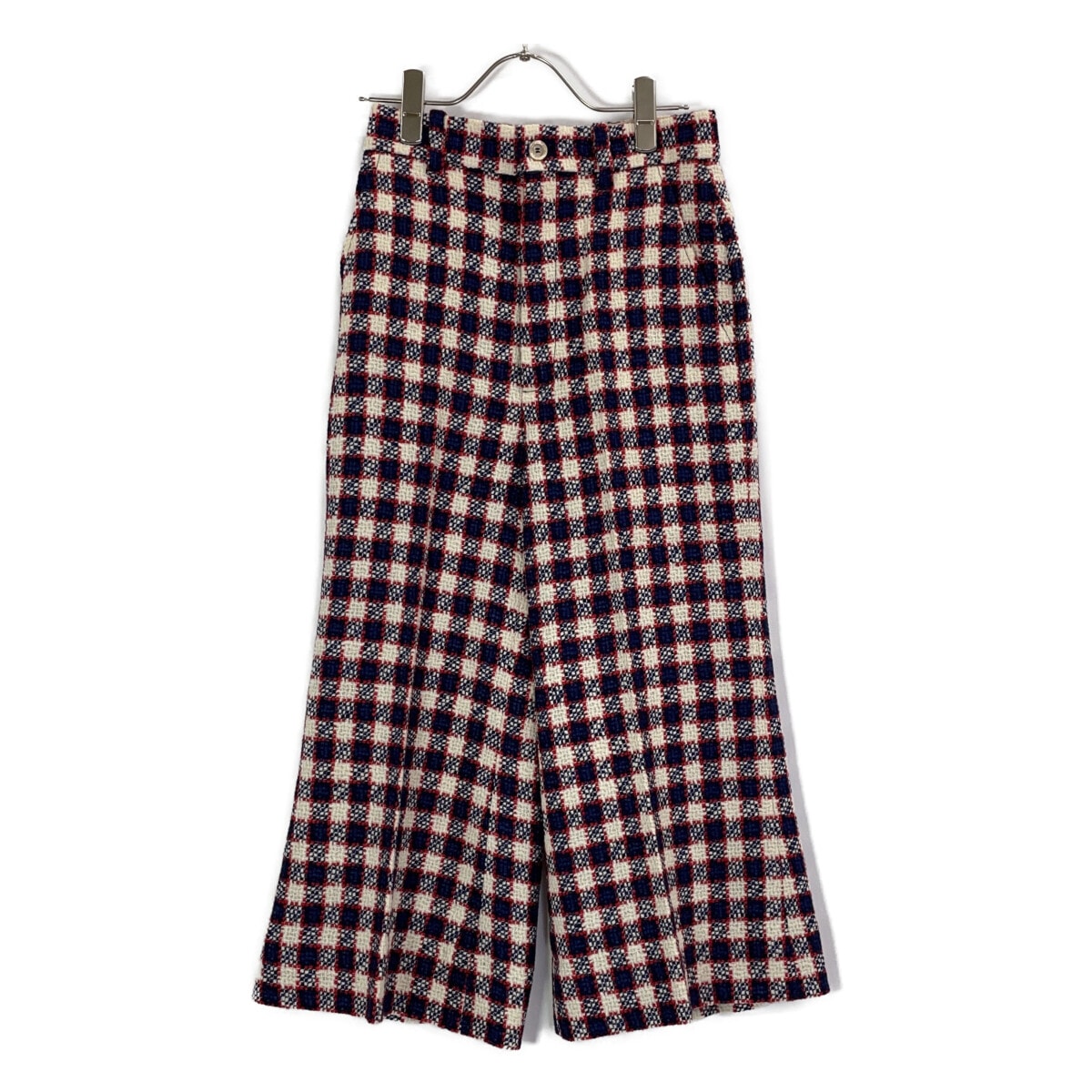 グッチ 19年 519349 ネイビー×ベージュ ツイード ワイドパンツ 36
