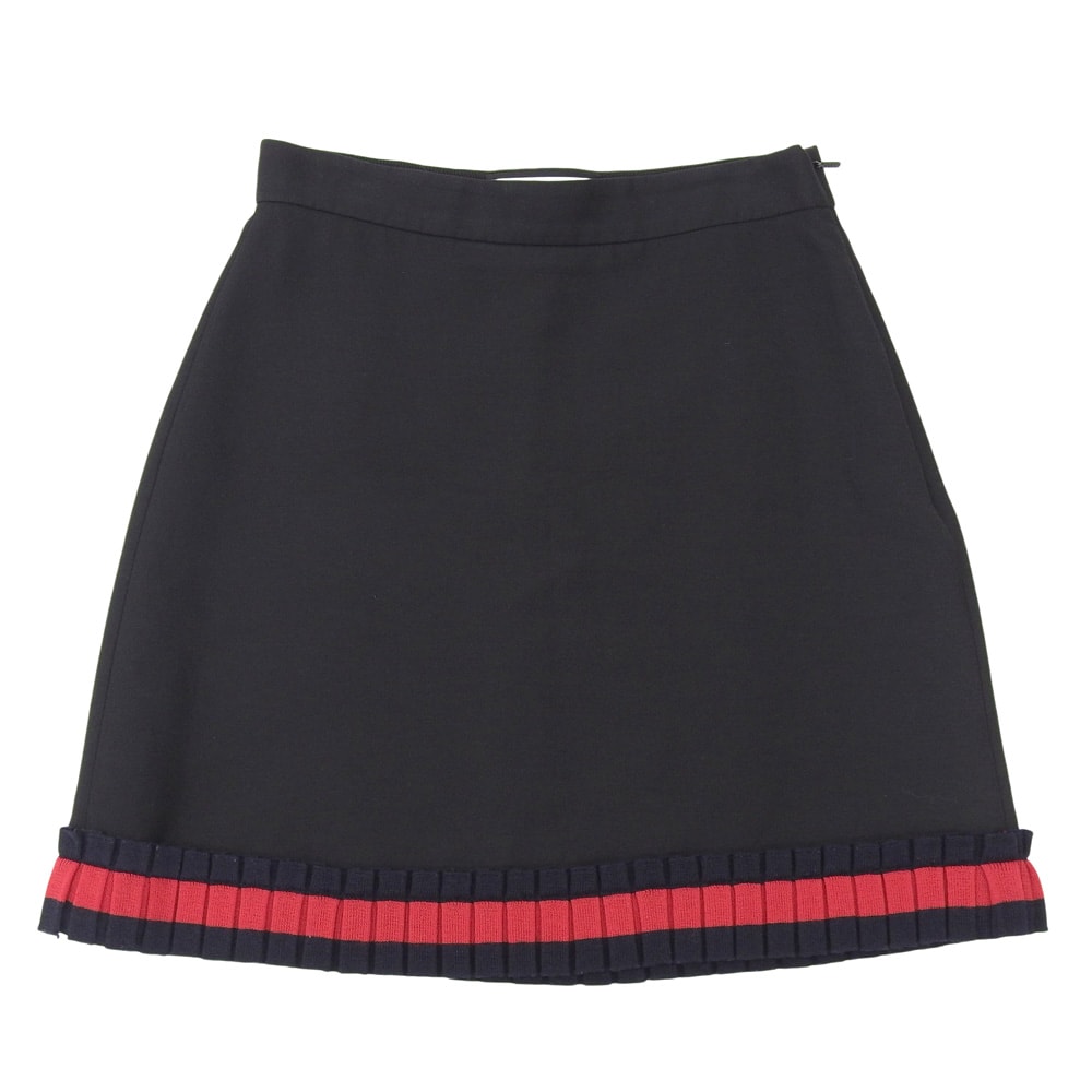 グッチ シルク コットン ニットラインフリル ミニスカート レディース ブラック 40 453892 16年 40