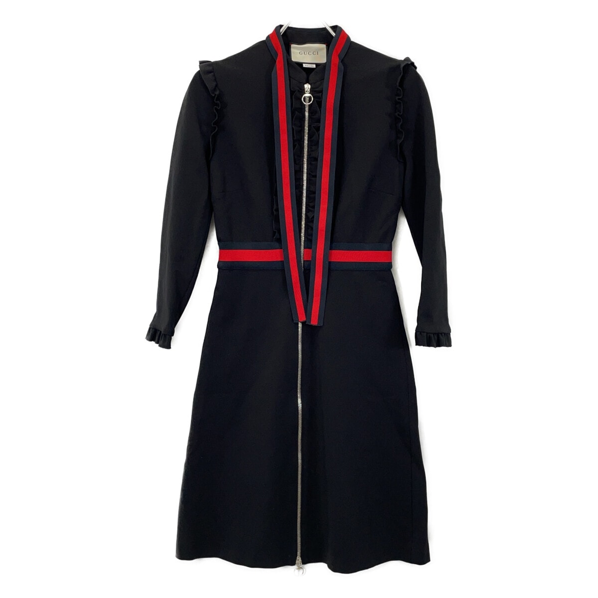 グッチ 457032 ブラック フロントZIP シェリーボウタイ ワンピース S