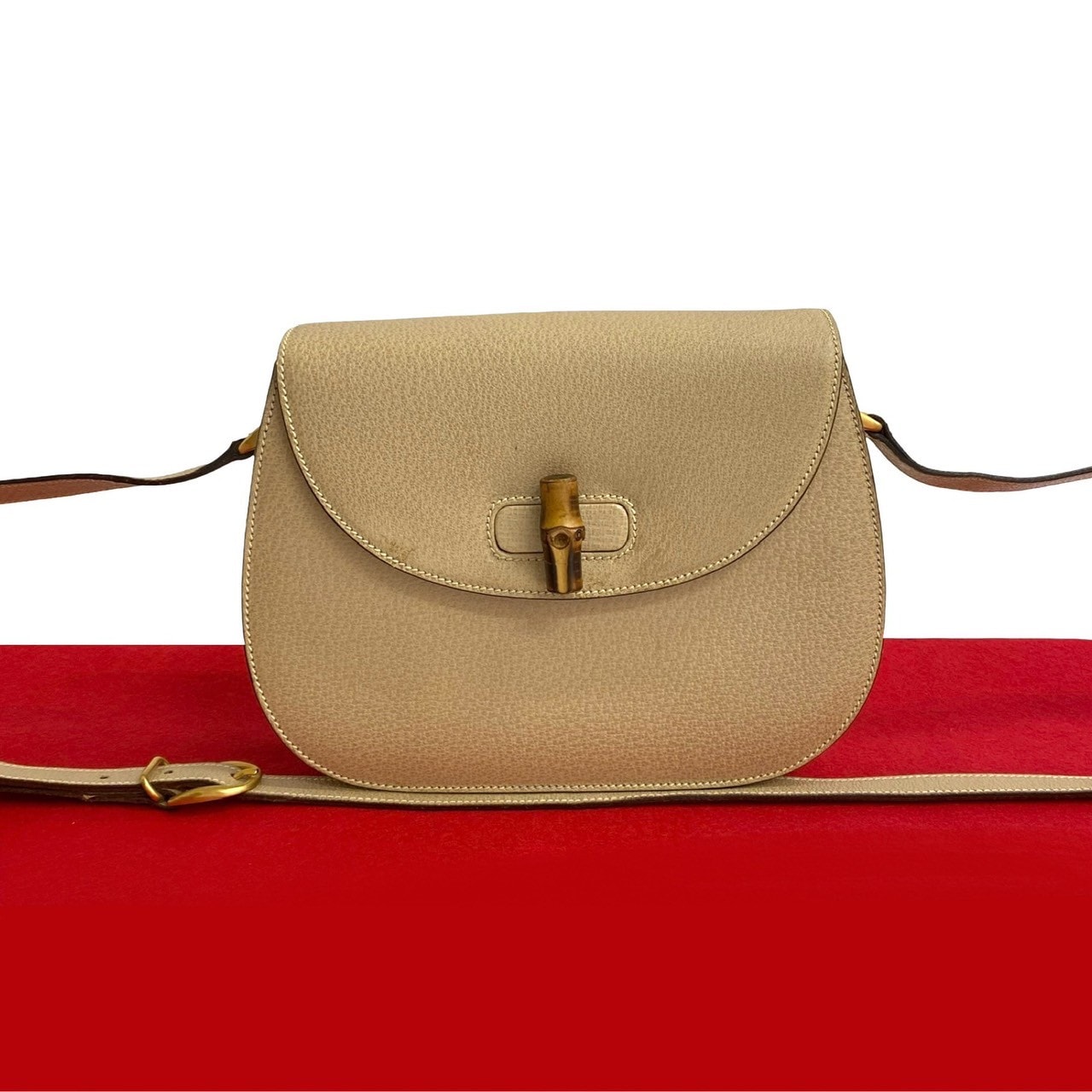 GUCCI グッチ バンブー ターンロック レザー バンブー ショルダーバッグ ベージュ