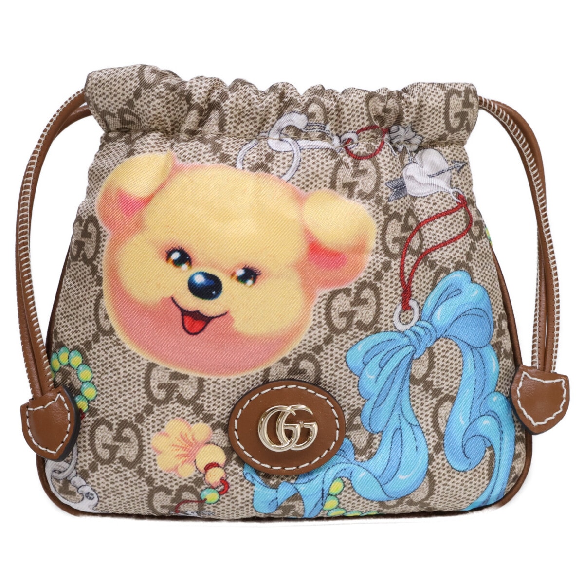 グッチ 新品同様 838893 ソ・インジ デザイン プレイフルシリーズ シルクxレザー バッグチャーム