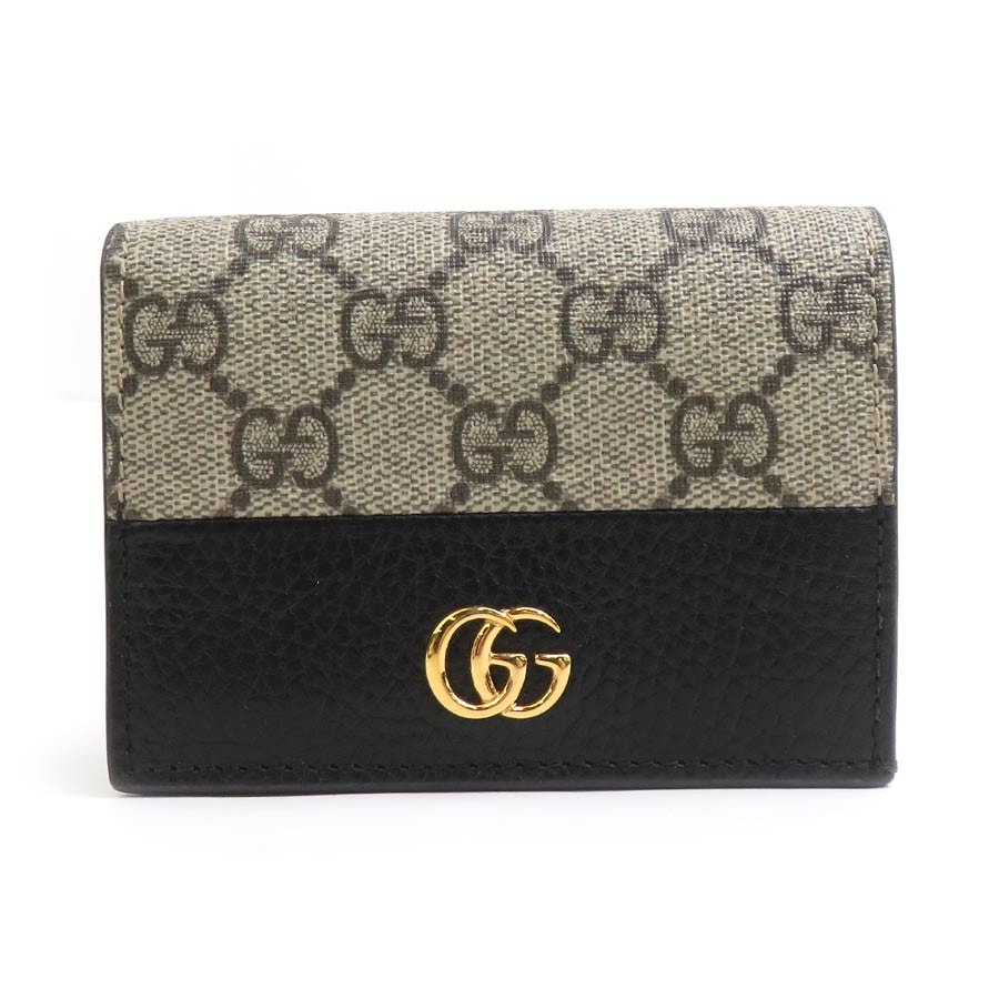 グッチ GUCCI 二つ折り財布 GGマーモント GGスプリームキャンバス/レザー ブラック×ブラウン ユニセックス 658610【中古】 r10590g