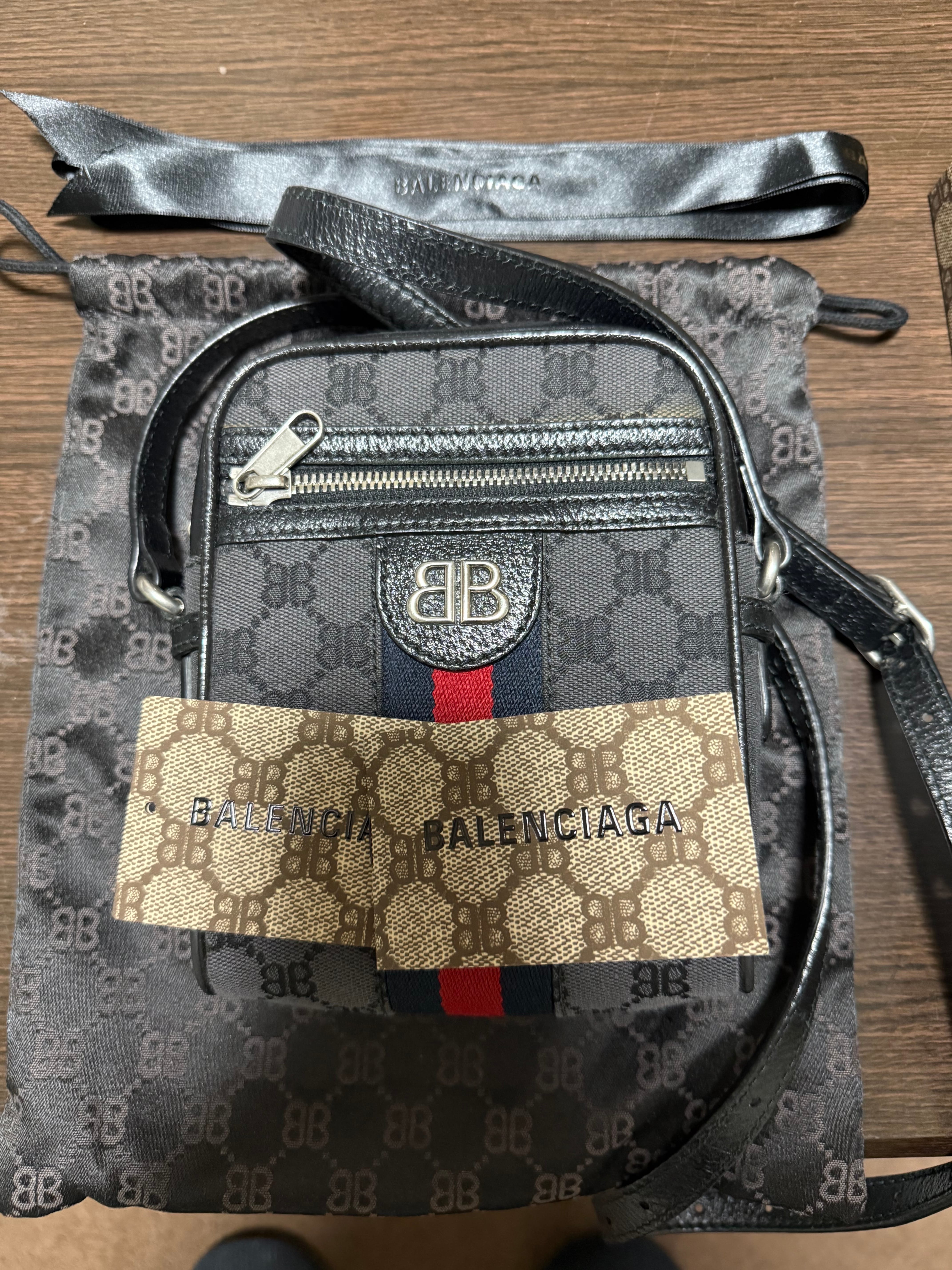 GUCCI x BALENCIAGA The Hacker Shoulder Zip Bag Canvas Jacquard "Black"