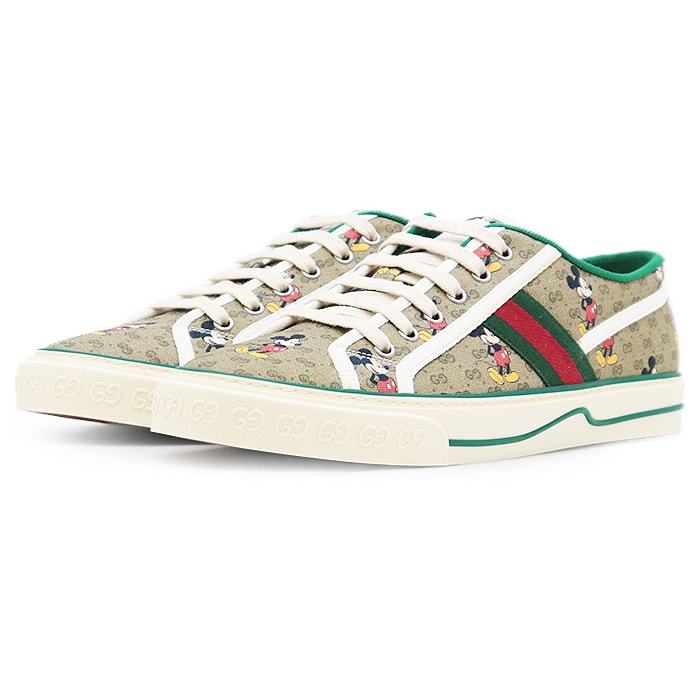 未使用 グッチ ×Disney ミッキーマウス GG柄 スニーカー メンズ ベージュ グリーン レッド 10 GUCCI