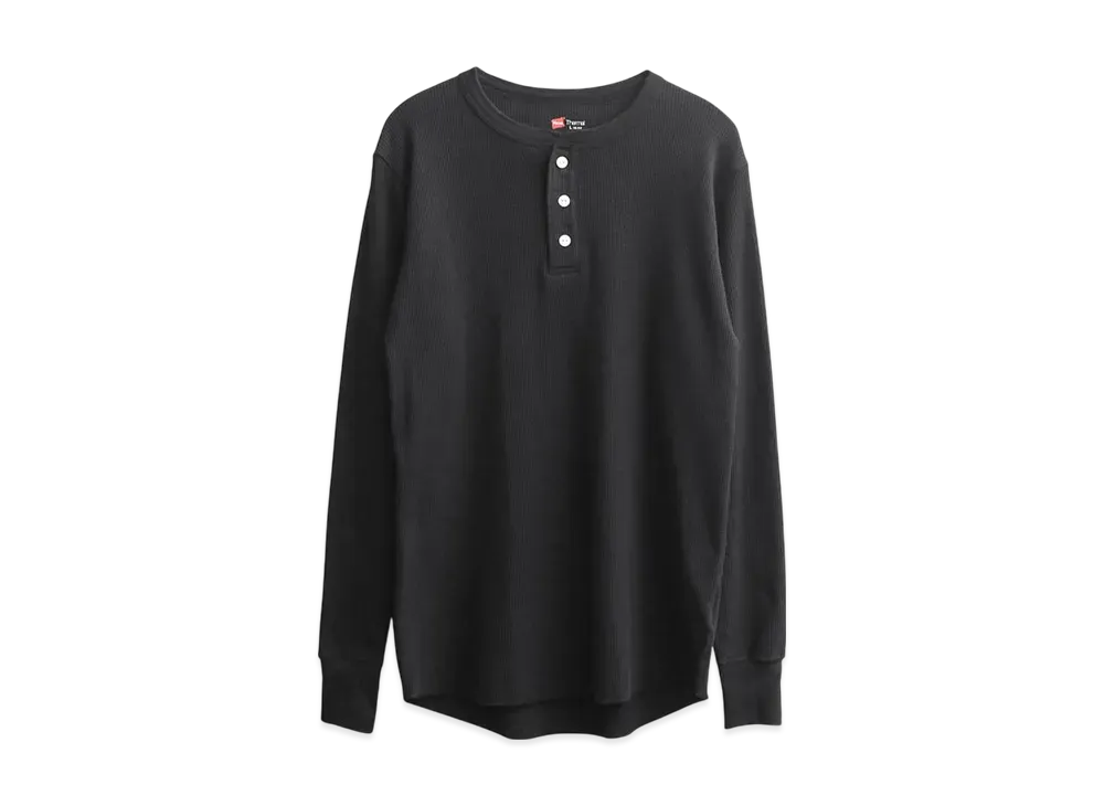 Hanes BEEFY Thermal Henry Neck Long Sleeve T-Shirt "Black"