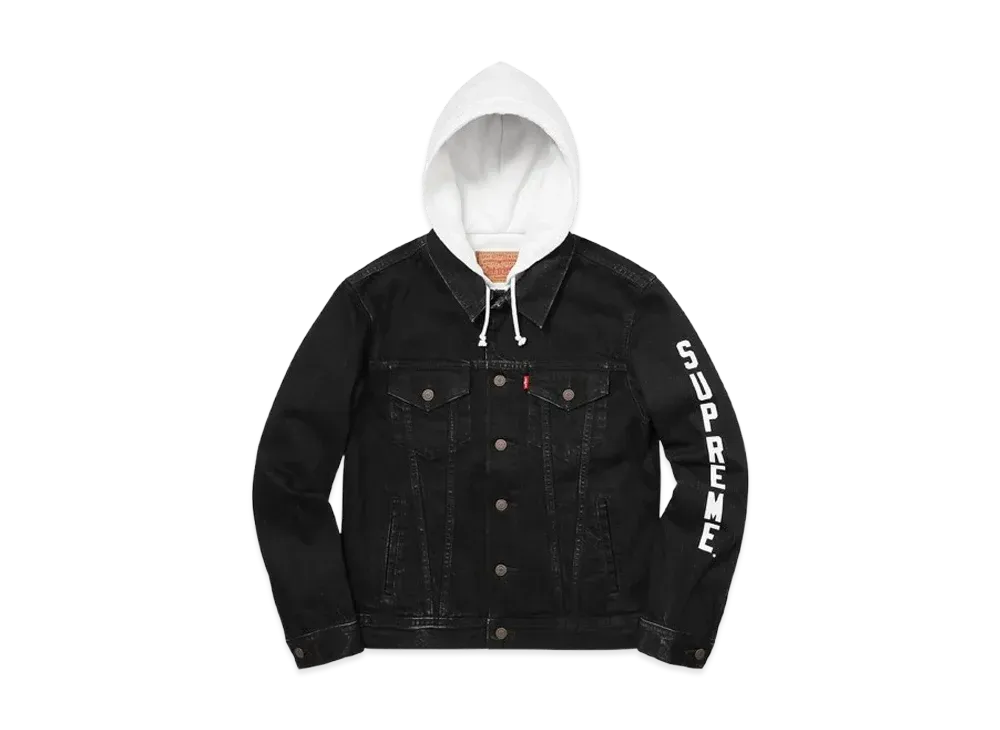 Supreme x LEVI'S Custom Fit Fleece Hooded Trucker Jacket "Black/White"