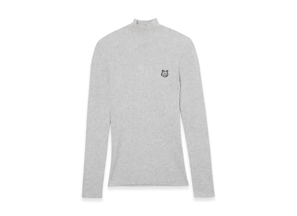 Maison Kitsune Tonal Fox Head Patch Fine Ribbed Turtleneck "Light Gray"