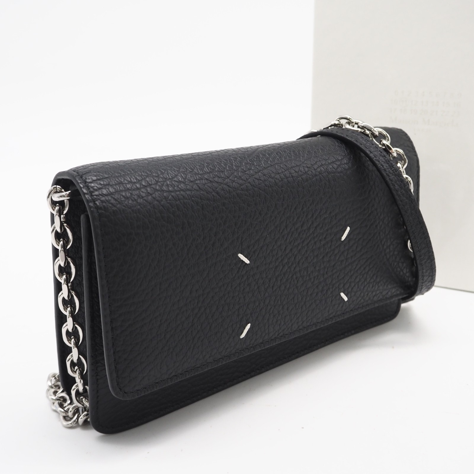 極美品 MAISON MARGIELA メゾンマルジェラ 4ステッチ チェーンウォレット SA3UI0008P4455T8013 2wayショルダーバッグ ブラック カーフレザー レディース