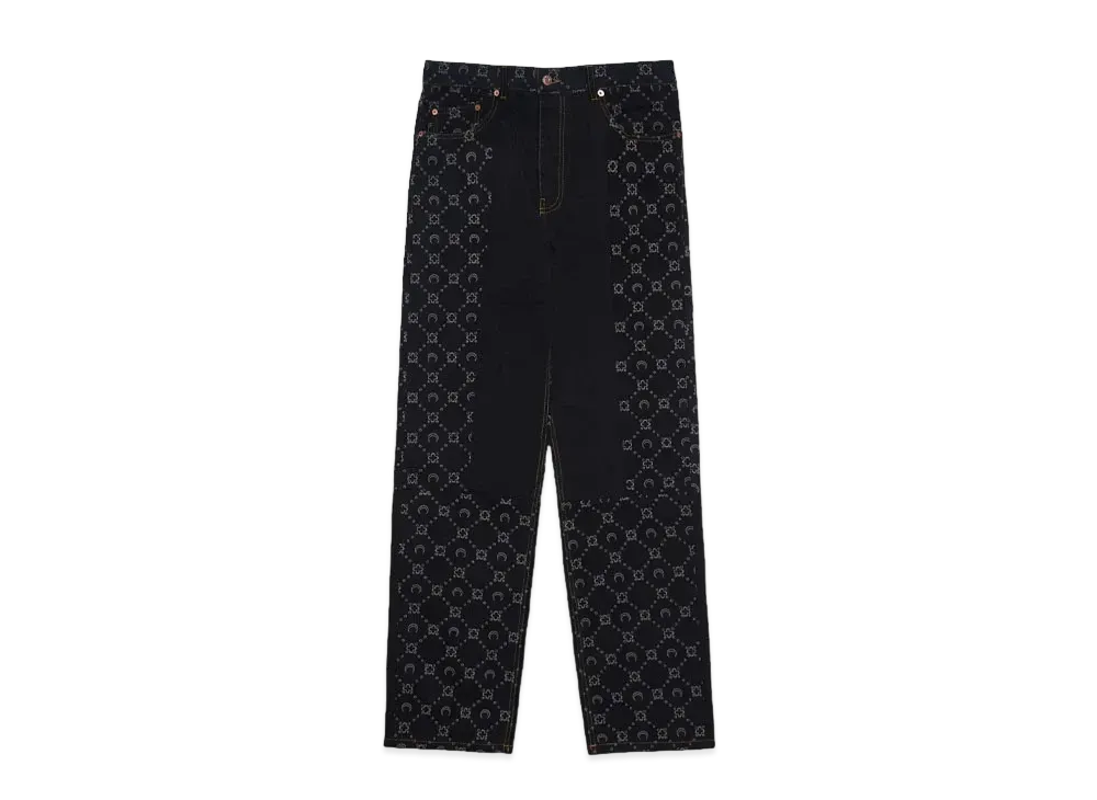 Marine Serre REGENERATED DENIM SLIM FIT PANTS "BLACK"