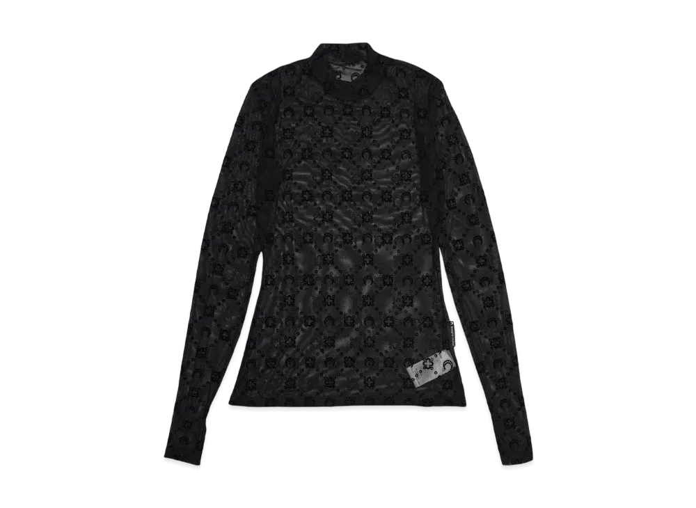 Marine Serre MOON DIAMANT MESH JACQUARD LONG SLEEVES TOP "BLACK"