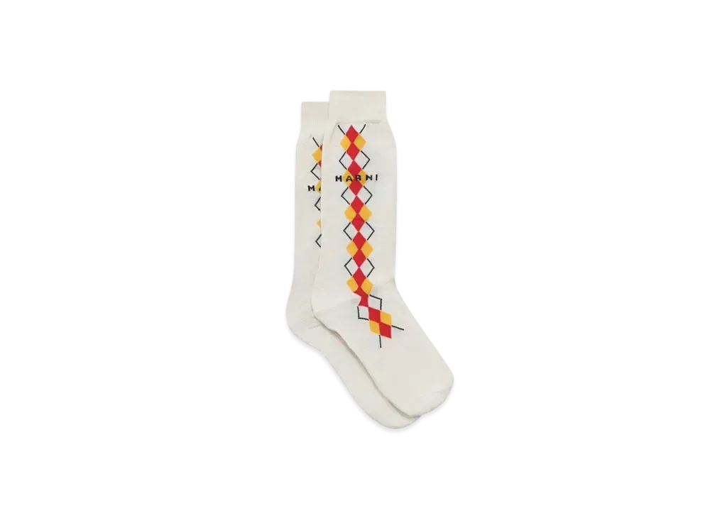 Marni Men's Socks with Argyle Detail "Ivory"