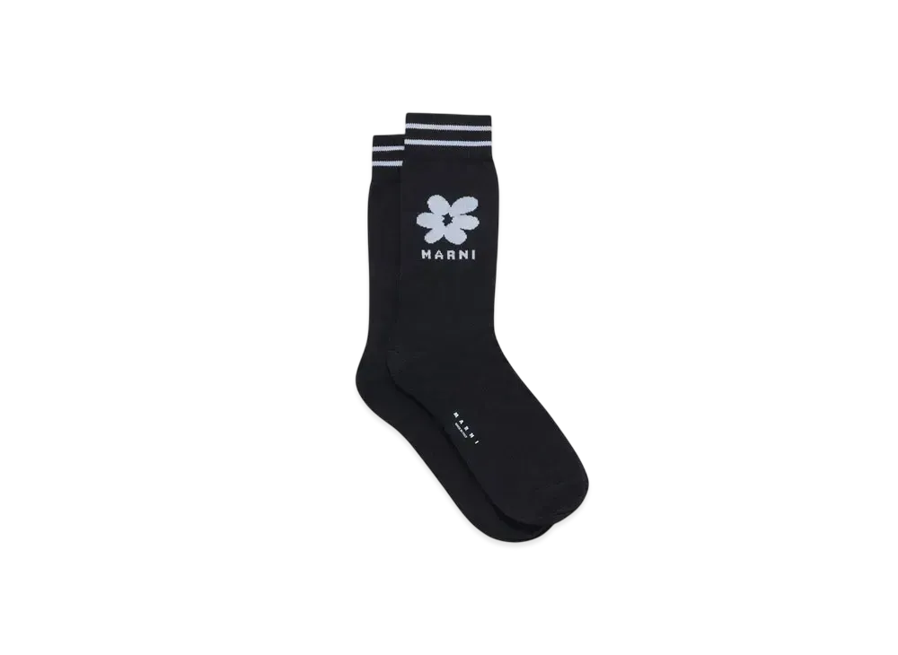 Marni Men's Cotton Socks with Jacquard Flower Detail "Black"