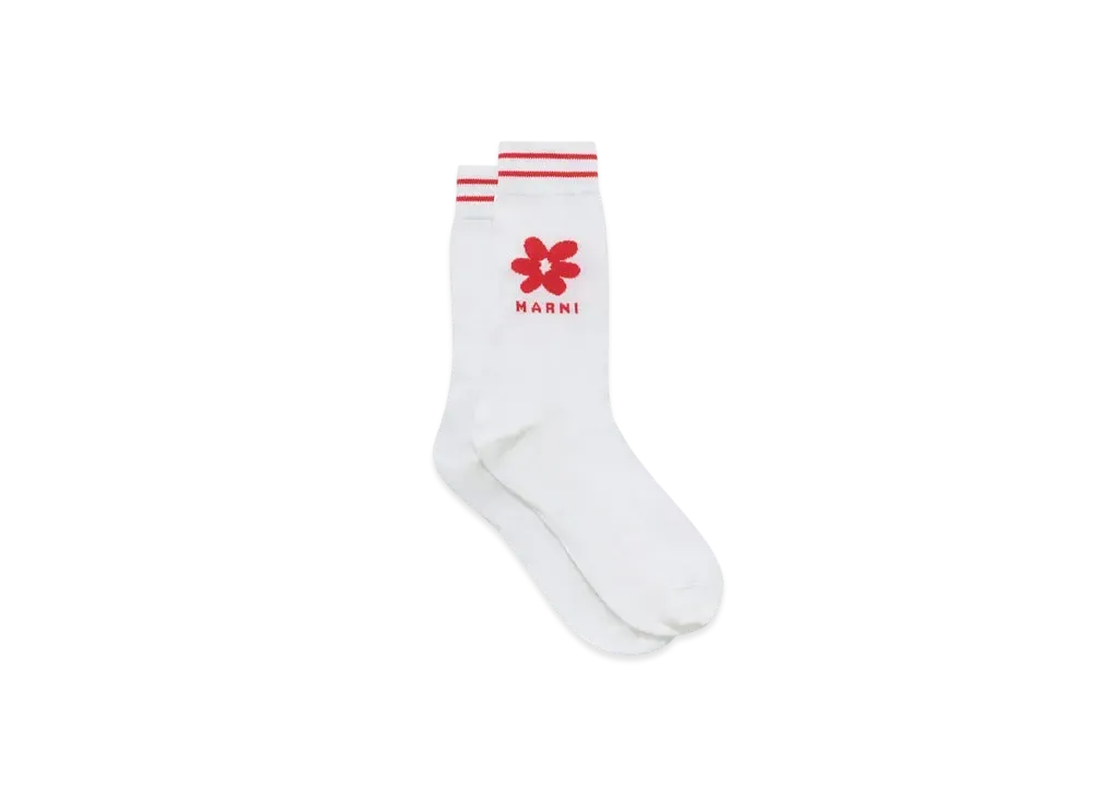 Marni Men's Cotton Socks with Jacquard Flower Detail "Ivory"