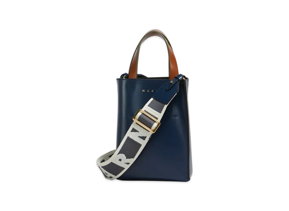 MARNI Museo Nano Bag in Leather "Glass Blue/Truffle/Moka"