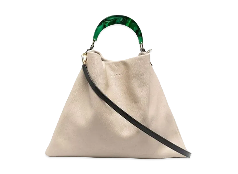 Marni Hobo Bag In Grained Calfskin and Resin Handle "Light Camel/Spherical Green/Black"
