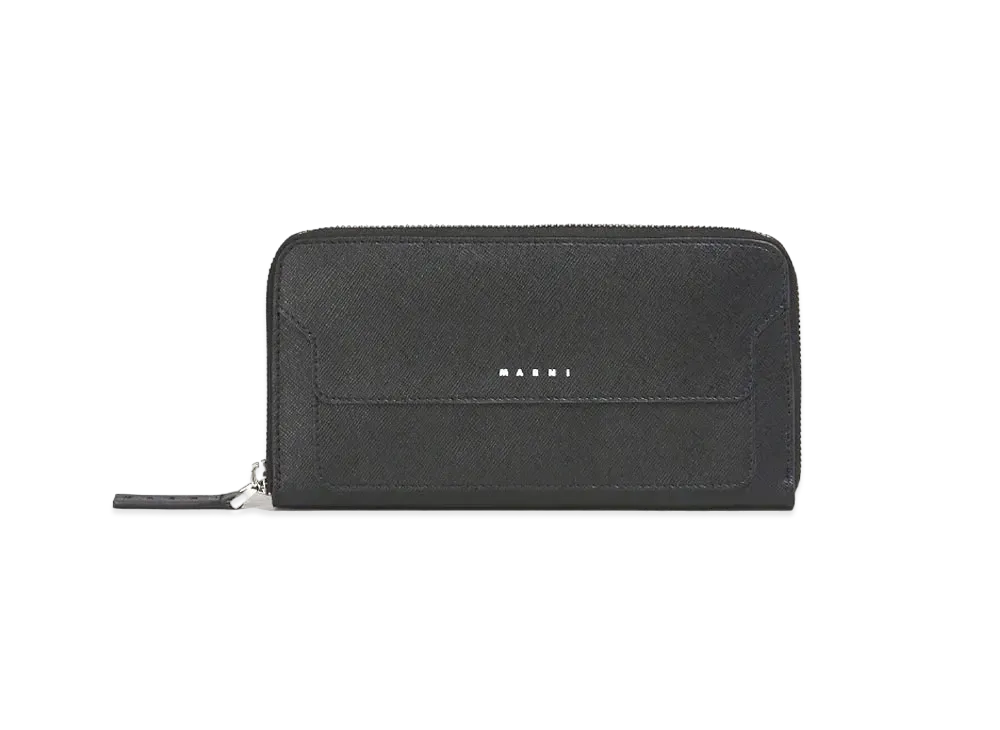 Marni Black Saffiano Leather Zip-Around Wallet "Black"