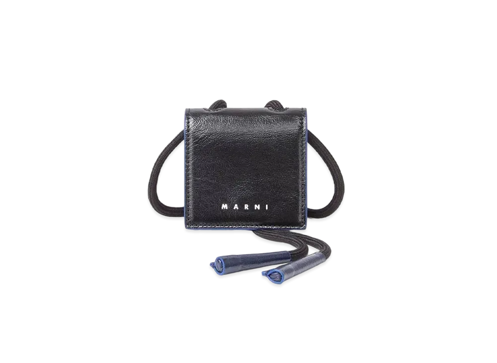Marni Bi-Coloured Calfskin Airpods Holder With Adjustable Nylon Shoulder Strap "Black/Navy Blue"