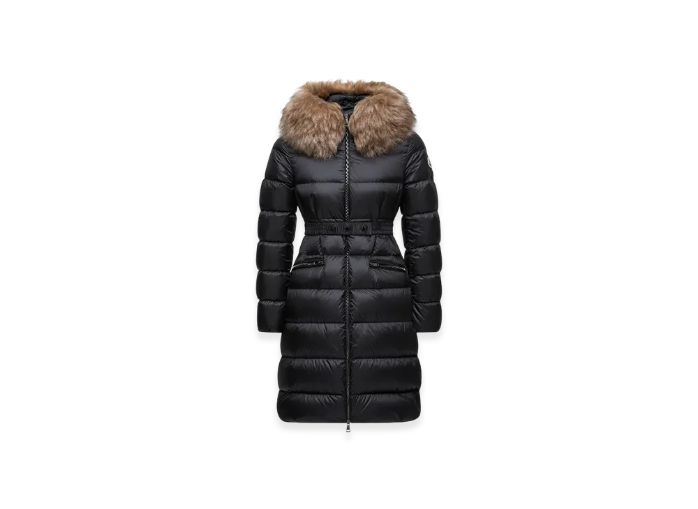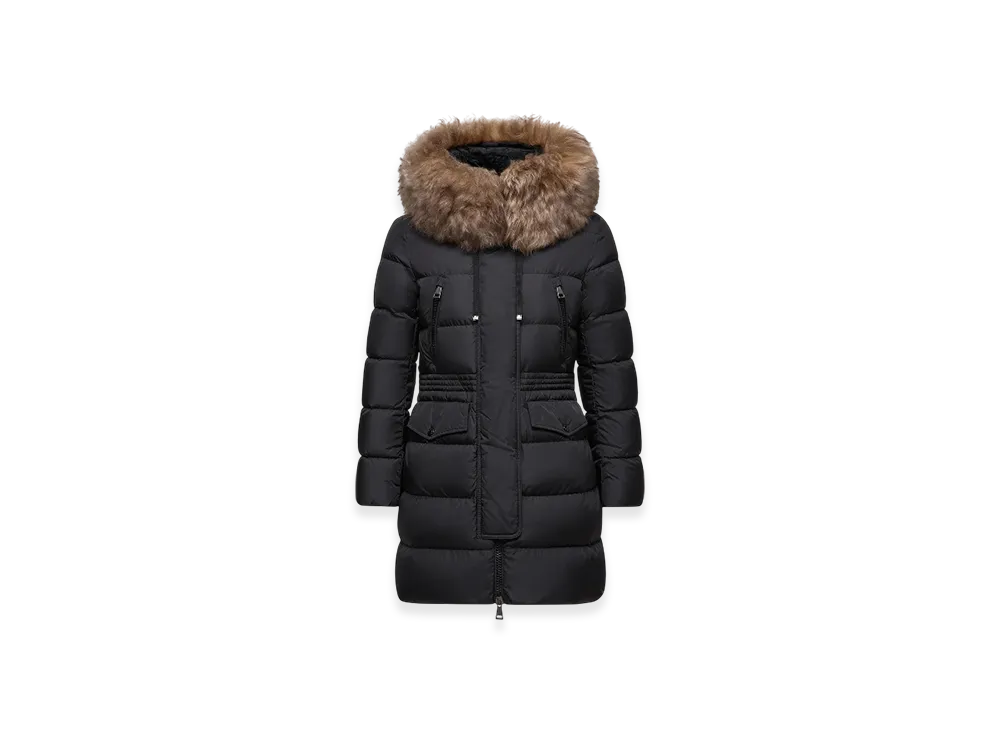 MONCLER Boedic Hooded Shearling-Trimmed Long Down Jacket "Black"