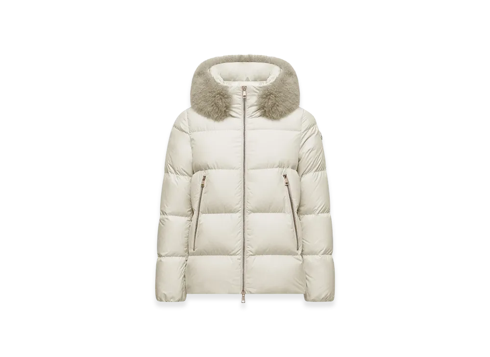 MONCLER Laichefur Hooded Shearling-Trimmed Short Down Jacket "White"