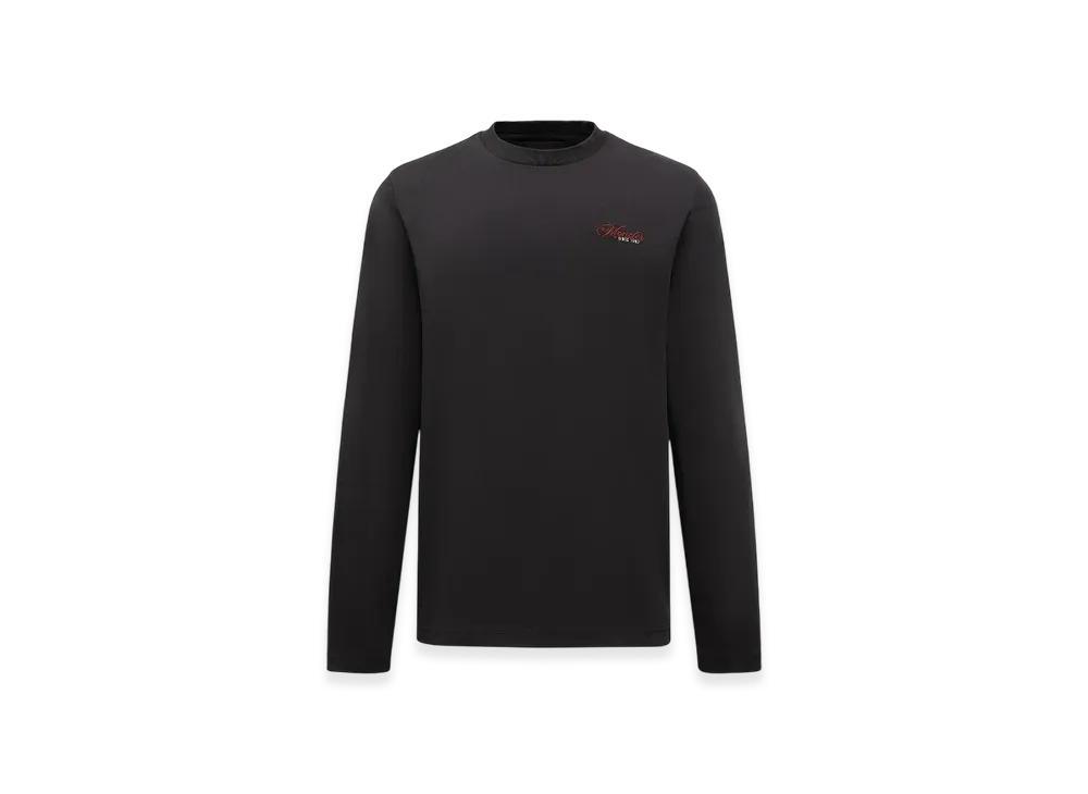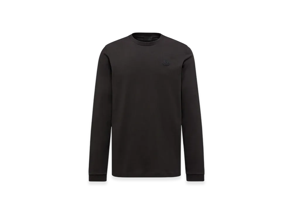 MONCLER Embroidered Logo Long Sleeve Cotton T-Shirt "Black"