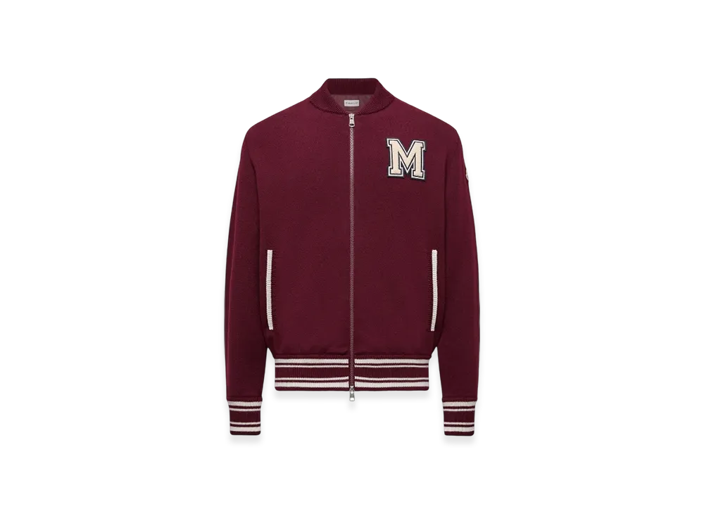 MONCLER Embroidered Monogram Padded Zip-Up Wool Blend Cardigan "Burgundy"