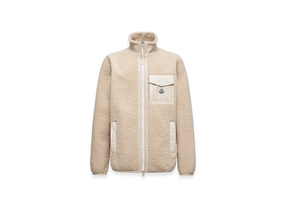 MONCLER Teddy Zip-Up Sweatshirt with Pocket "Light Beige"