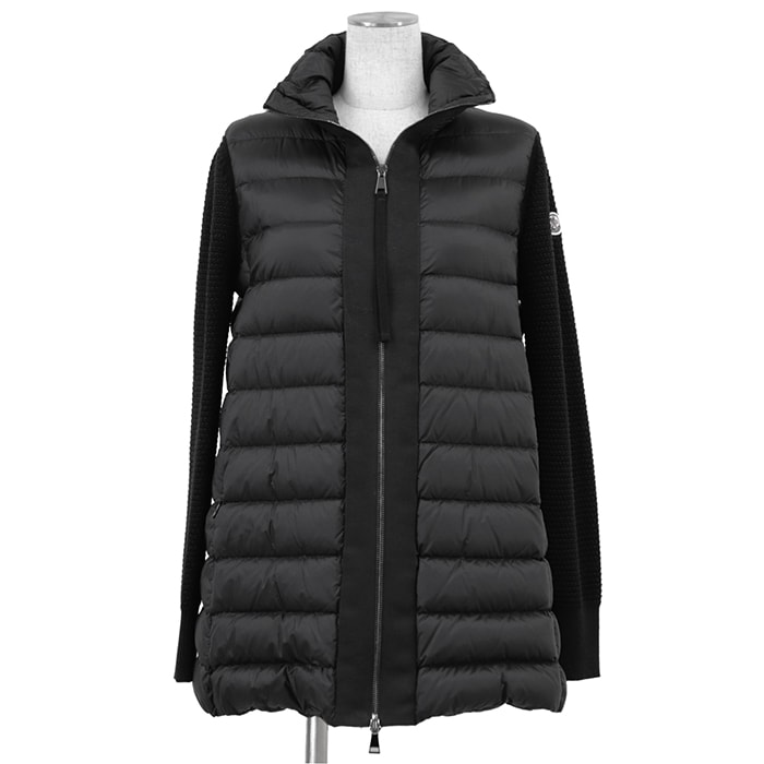【極美品】MONCLER モンクレール ダウンジャケット MAGLIONE サイズ S レディース ニット x ナイロン コンビネーション スタンドカラー ロゴワッペン アウター ブラック 黒 ルーマニア製