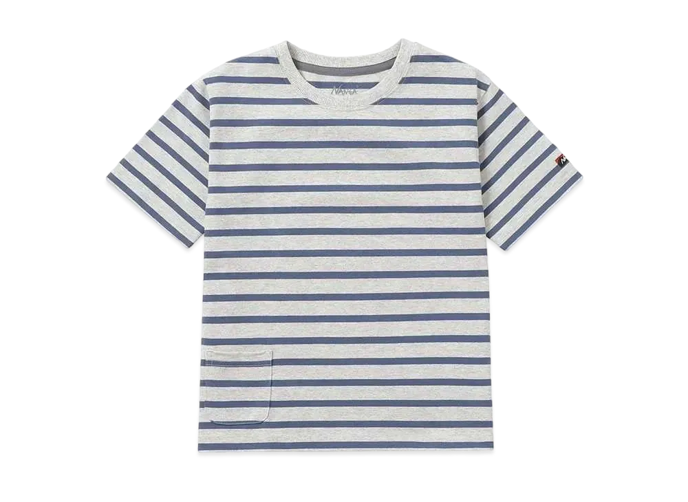 NANGA Eco Hybrid Kids Border Tee "L.Grey/Blue"