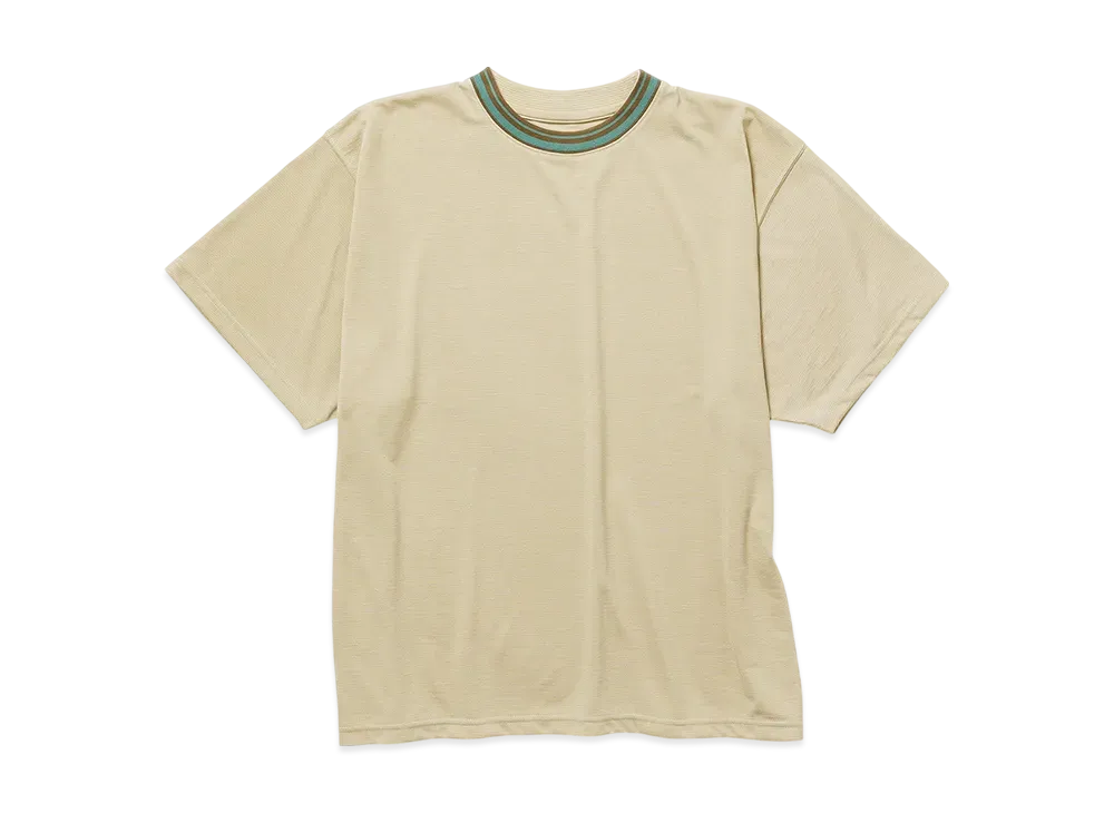 NANGA Ringer Collar Border Tee "Orange/Mint"