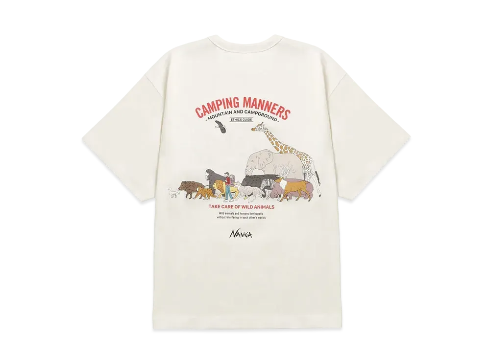 NANGA Eco Hybrid Camping Manners Wild Animals Tee(Unisex) "White"