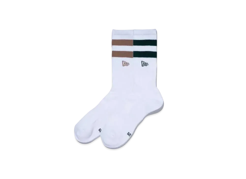 NEW ERA Socks Crew 2 Pair Line Flag Logo Embroidery "Dark Green/Beige"