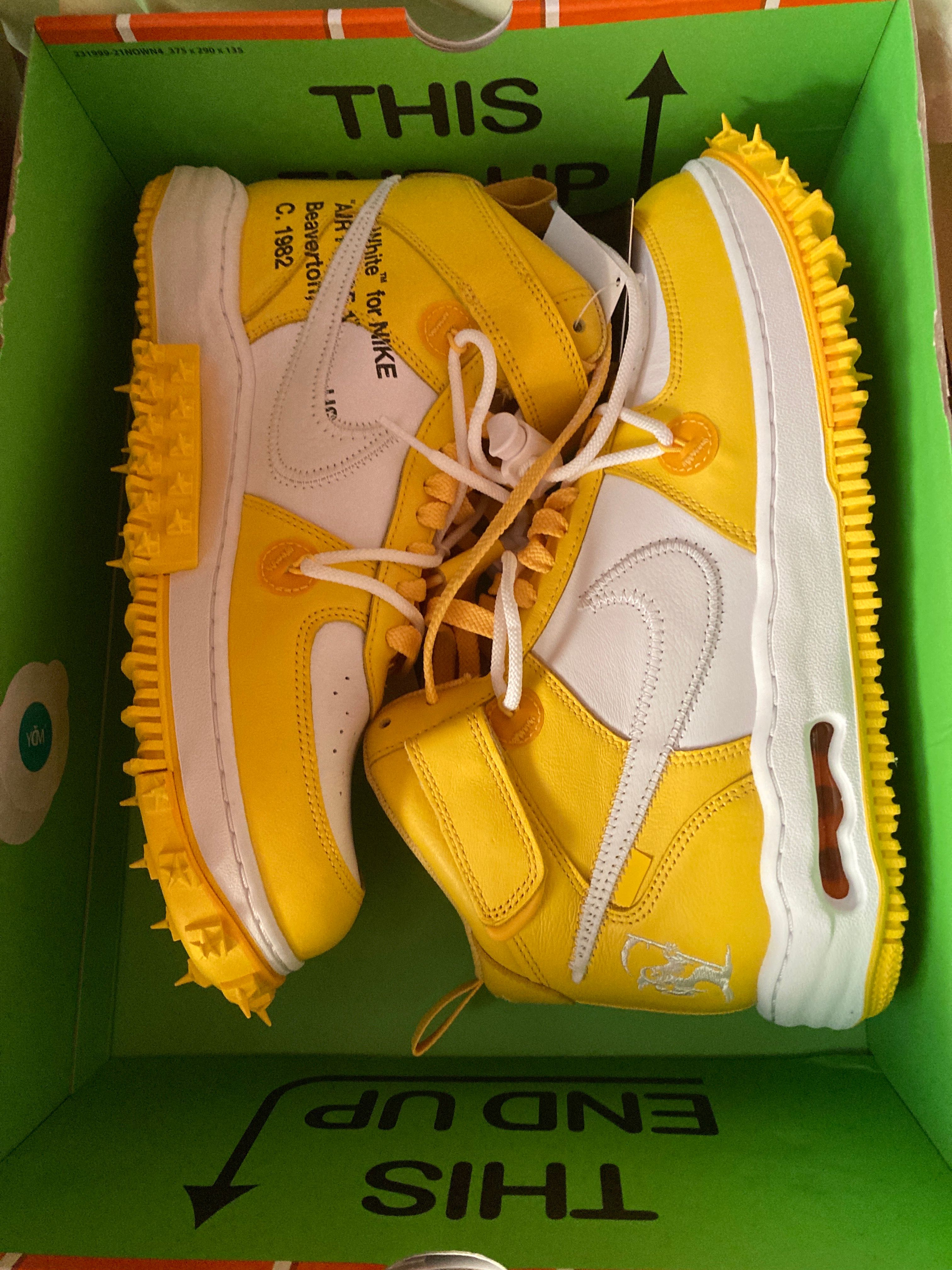 Off-White × Nike Air Force 1 Mid SP LTHR "White and Varsity Maize"