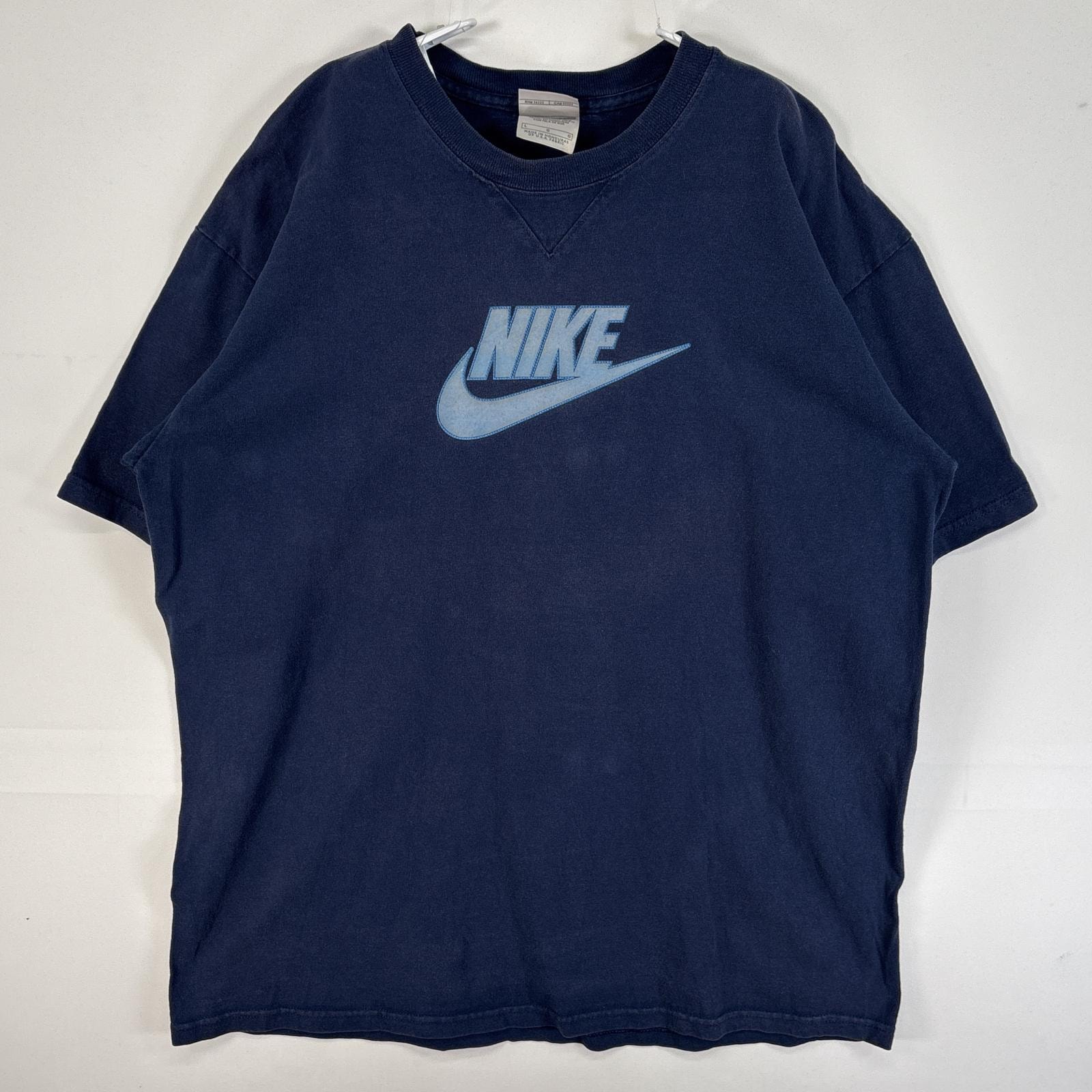 古着 00’s/00年代 ナイキ NIKE 半袖Tシャツ 肉厚 フェード センター ロゴ プリント クルーネック L ネイビー メンズ