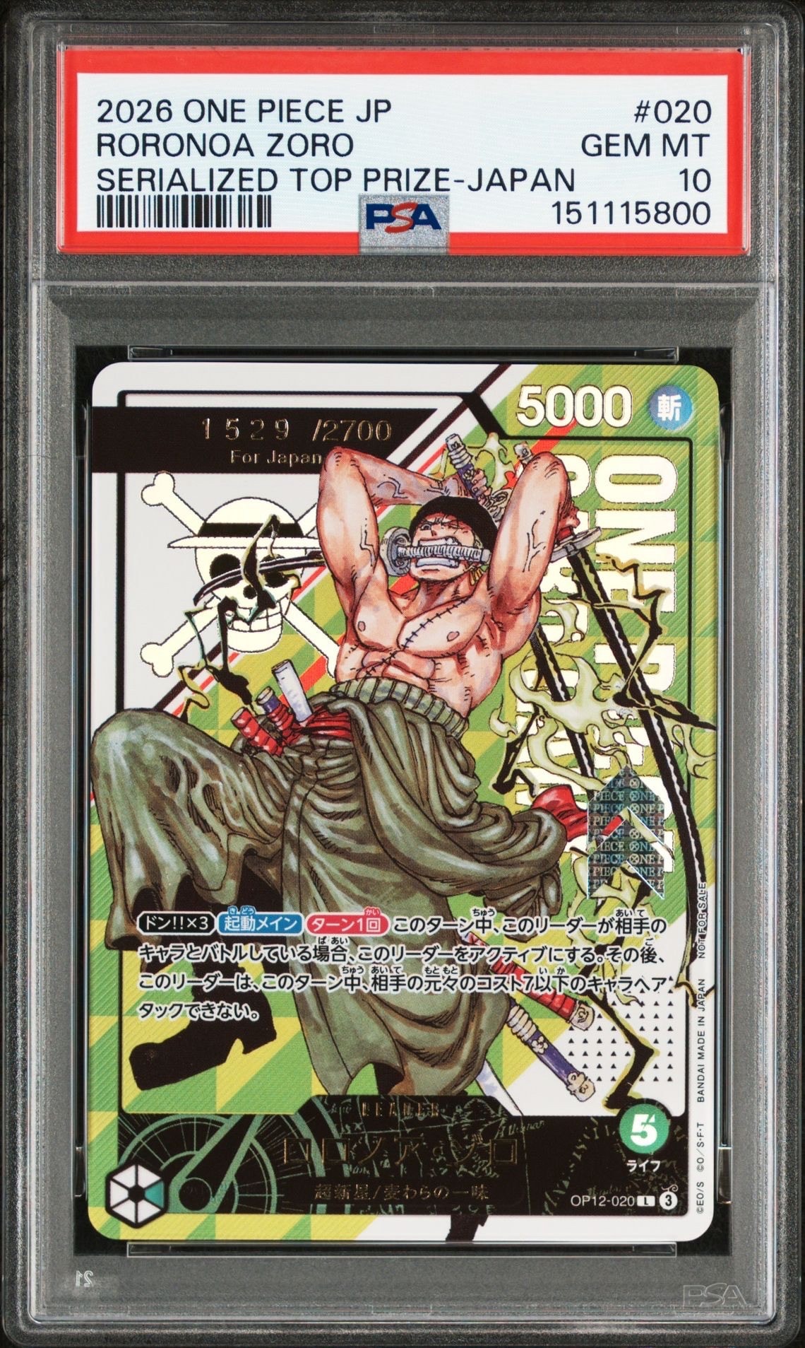 ロロノア・ゾロ:(シリアルゾロ) 開封済み L [OP12-020 ](プロモーションカード「フラッグシップバトル2026 1月 優勝記念品」)