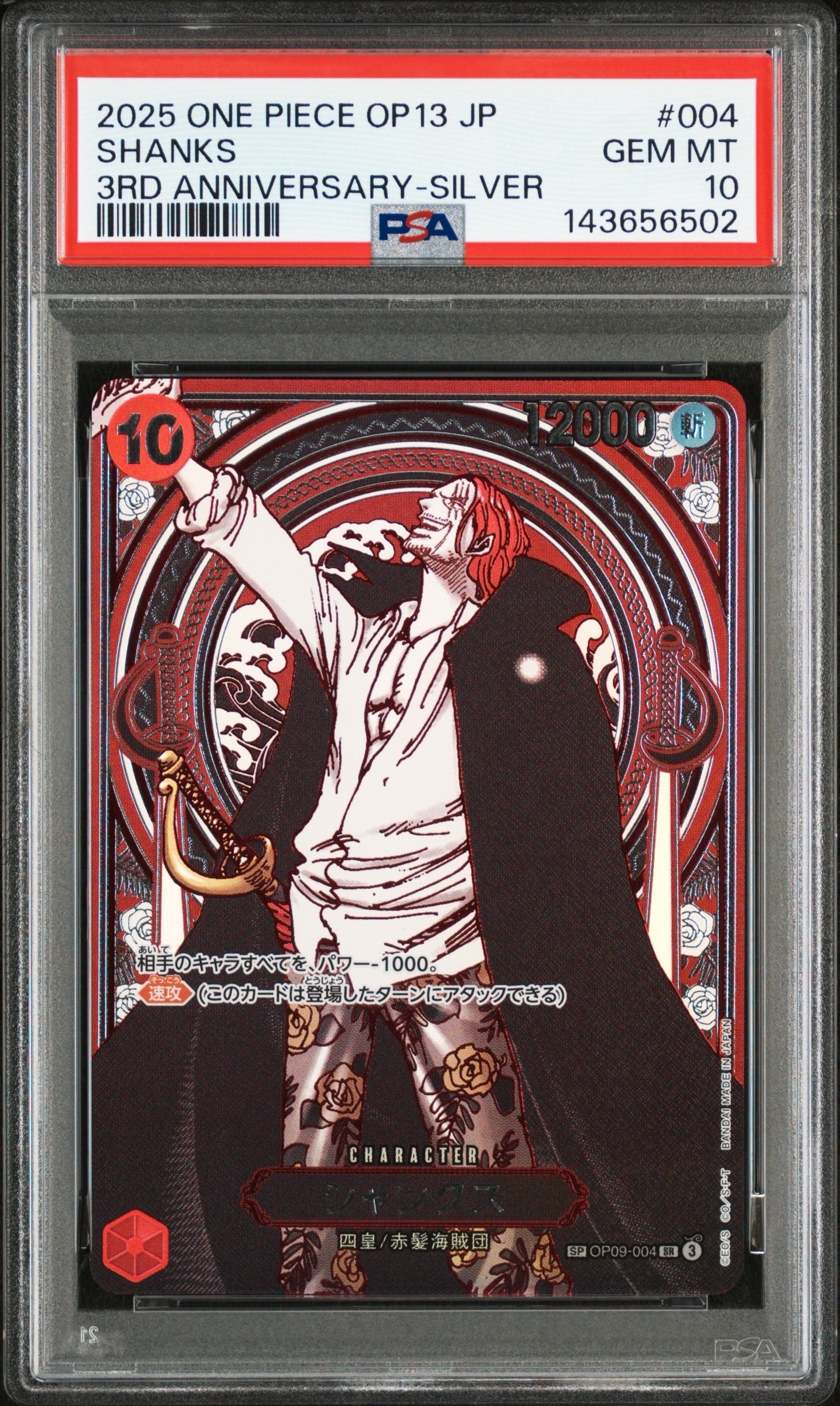 シャンクス:銀背景 SR-SPC :3周年スペシャルカード [OP09-004](ブースターパック「受け継がれる意志」)