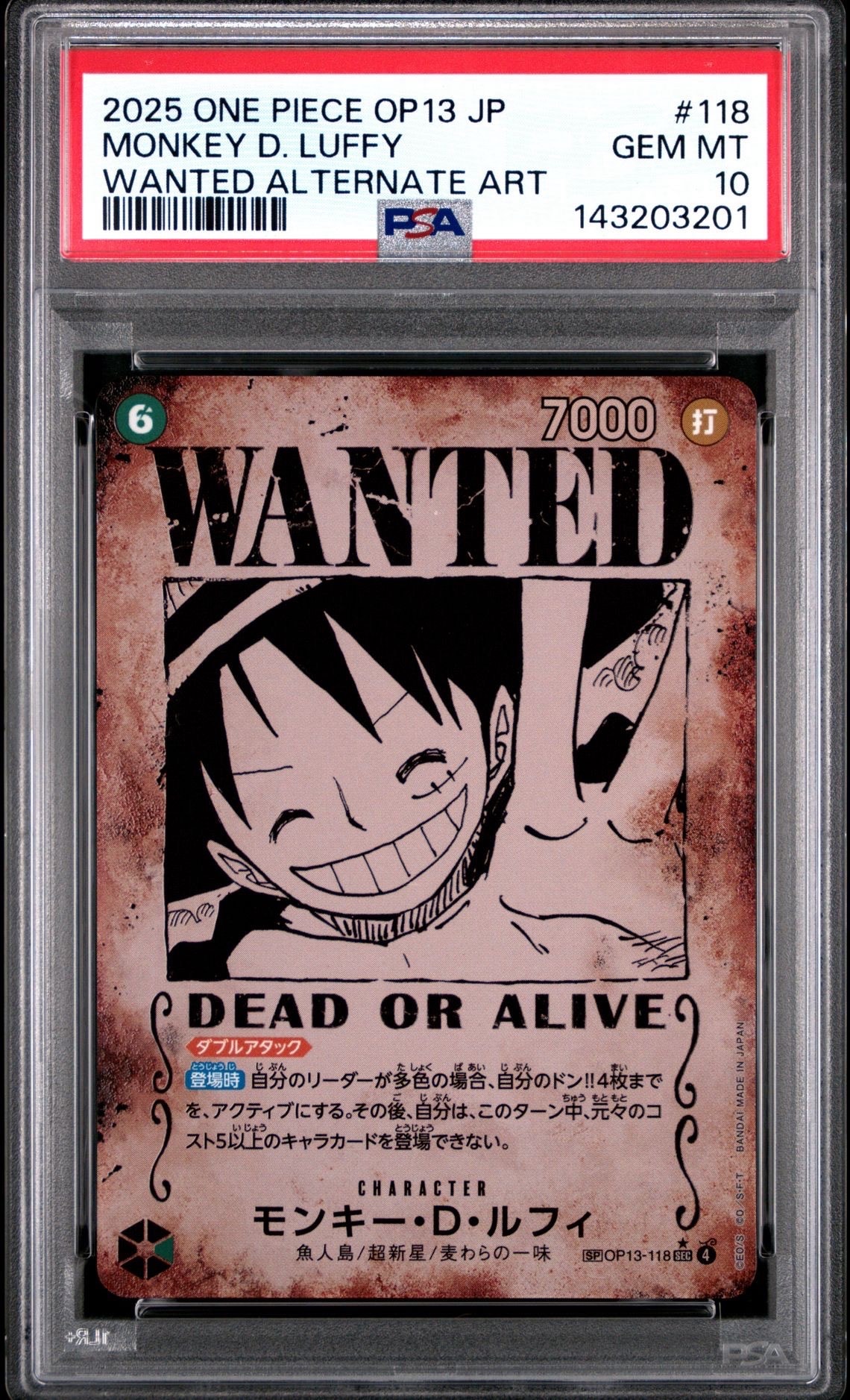 モンキー・D・ルフィ:手配書 SEC-SPC [OP13-118](ブースターパック「受け継がれる意志」)